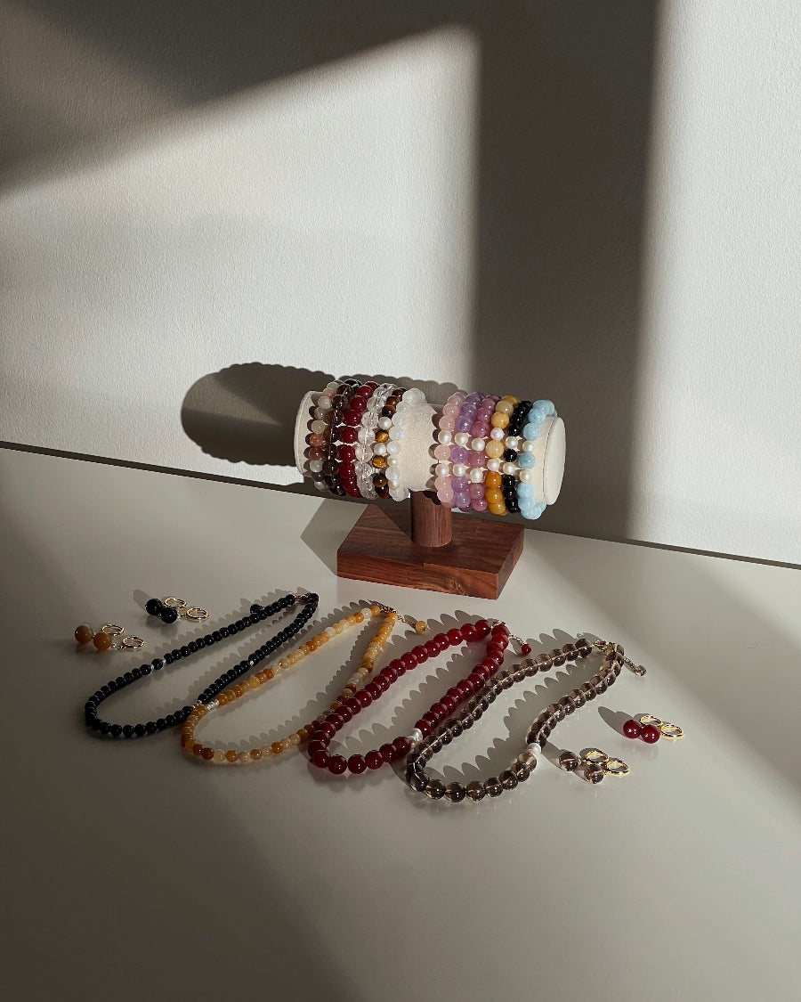 Our jewelry begins with carefully sourced materials from the largest crystal markets in China. We select only high-quality natural crystals and freshwater pearls, ensuring every piece is authentic and untreated. No dyes, stains, or coatings are ever used, so each gemstone carries its pure energy and natural beauty.